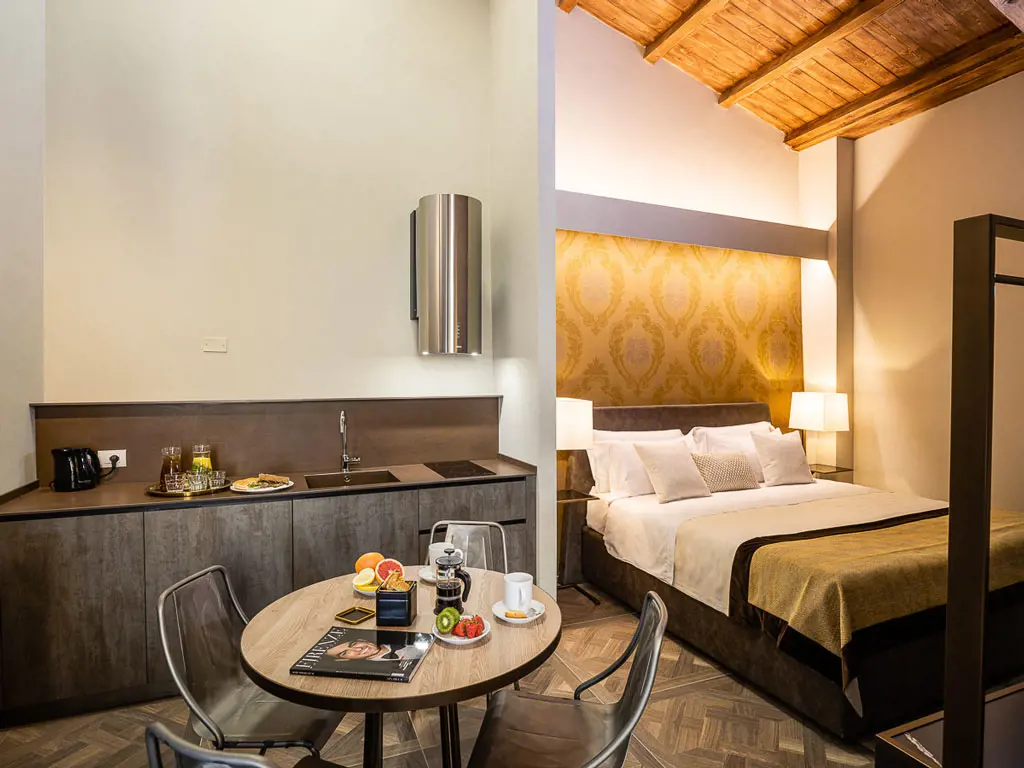 The spacious bedrooms and apartments, equipped with all comforts, combine traditional florentine style of exposed timber beams and stone with stylish interiors and contemporary décor.